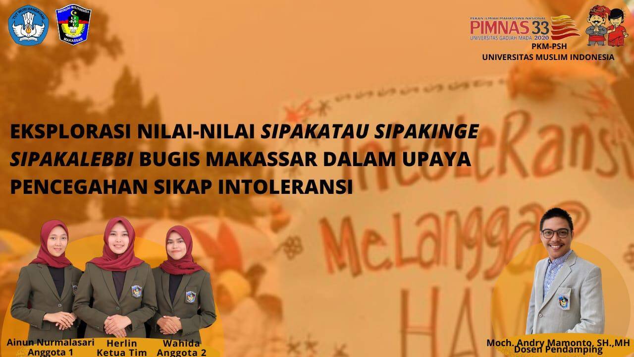 Merujuk pada dalil para ahli, sikap mahasiswa UMI direfleksikan melalui telaah korelasi Nilai Toleransi dalam Nilai Budaya Siapakatau, Sipakainge dan Sipakalebii sebagai upaya preventif pencegahan Sikap Intoleransi di Sulawesi Selatan.