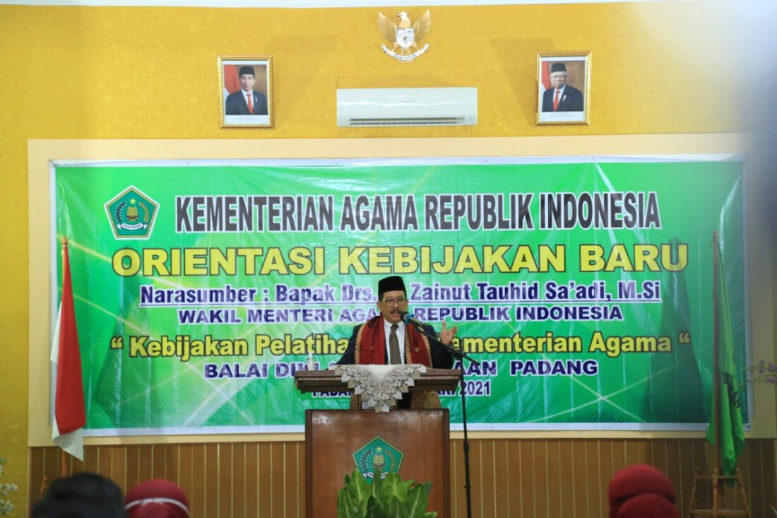 “ASN Kemenag harus terus mengampanyekan moderasi beragama,” kata Wamenag saat memberikan pembinaan kepada ASN Kanwil Kemenag Sumatera Barat di Balai Diklat Keagamaan Padang, Kota Padang, Jum’at (29/01/2021).