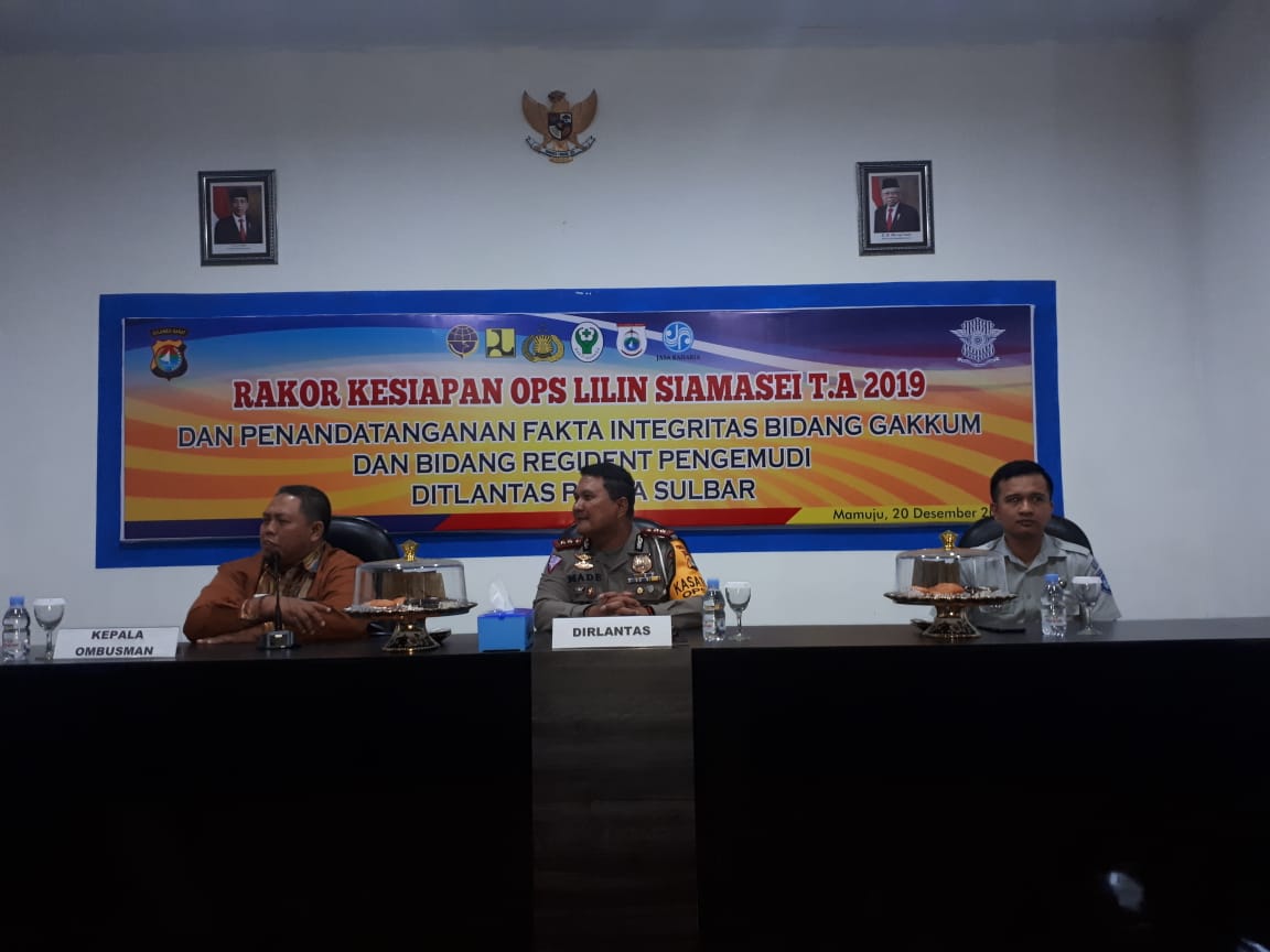 Ditempat yang sama Dirlantas Polda Sulbar AKBP. I Made Darmadi Giri, S.I.K. mengatakan, semua jajaran lantas akan terus membangun sinergi dengan Ombudsman dalam proses pelayanan publik termasuk selama operasi lilin ini.