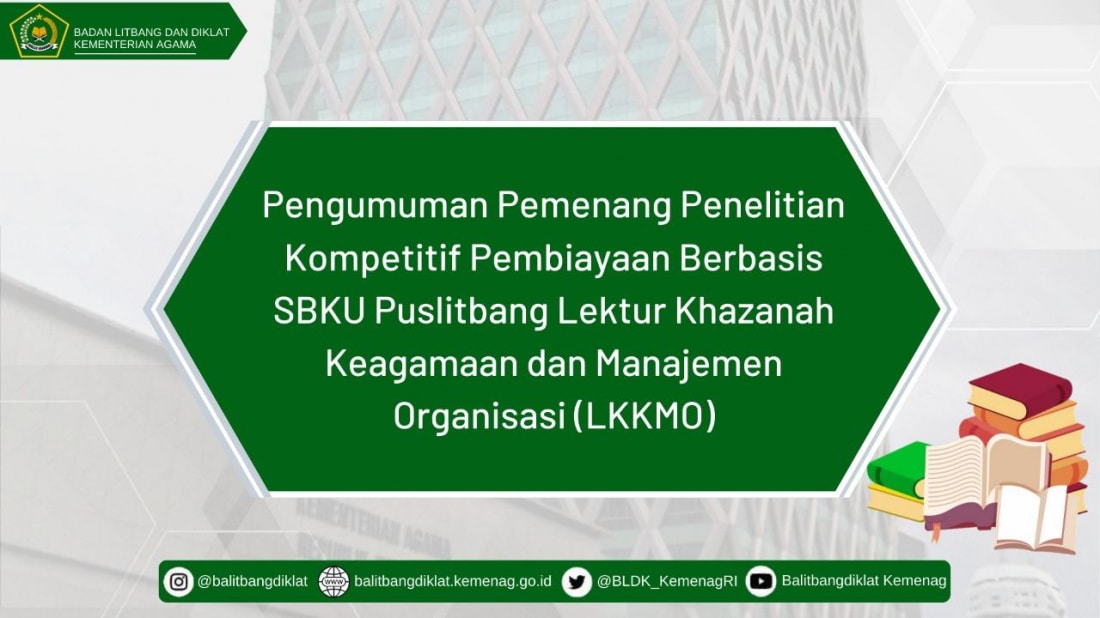 JAKARTA, LINES.id – Kementerian Agama melalui Puslitbang Lektur, Khazanah Keagamaan dan Manajemen Organisasi (LKKMO) Badan Litbang dan Diklat telah memilih 10 judul penelitian pemenang kompetisi berbasis keluaran. Kompetisi penelitian ini digelar sebagai salah satu respon terhadap Peraturan Menteri Riset dan Teknologi Pendidikan Tinggi Nomor 20 Tahun 2018 tentang Penelitian Berbasis Keluaran.