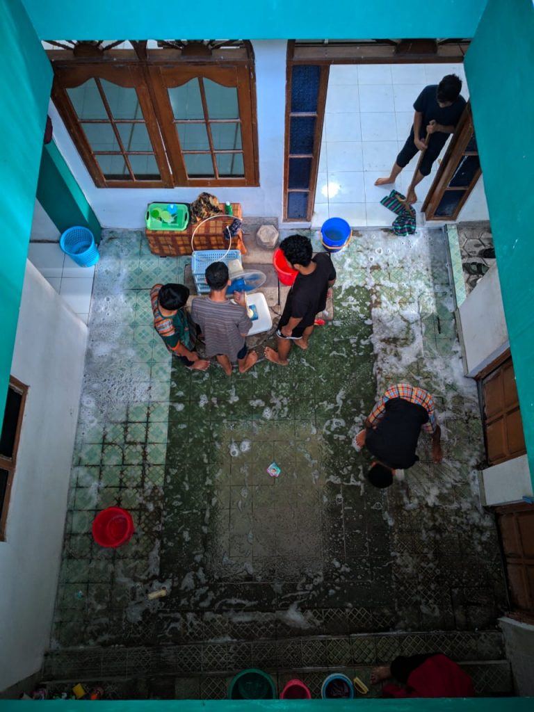 YOGYAKARTA, LINES.id – Jumat bersih merupakan salah satu kegiatan rutin santri Pondok Pesantren Mahasiswa (PPM) Arroyyaan Baitul Hamdi Yogyakarta di hari jumat. Dimana para santri membersikan area dalam dan luar masjid. Agar lingkungan masjid menjadi bersih sehingga jamaah salat bisa khusuk dalam beribadah.