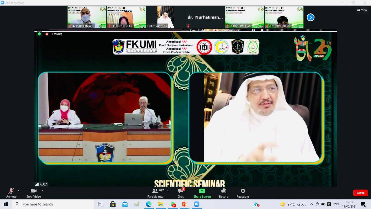 MAKASSAR, LINES.id – Fakultas Kedokteran (FK) Universitas Muslim Indonesia (UMI) menggelar International Seminar dalam rangka Milad FK UMI ke-29 dan Milad UMI ke-67, Sabtu (19/6/2021). International Seminar mengangkat tema “Medicine and Islamic Civilization” diikuti lebih dari 800 peserta secara daring melalui video teleconference zoom.